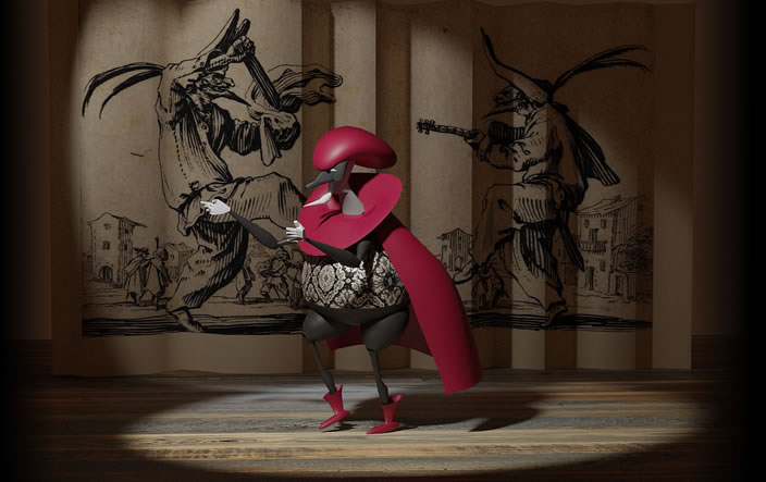 ちなみにコメディア・デラルテの仮面と、有名なベニスのカーニバルの仮面とは共通点がありそうだが、それほど直接的な関係ではないらしい。